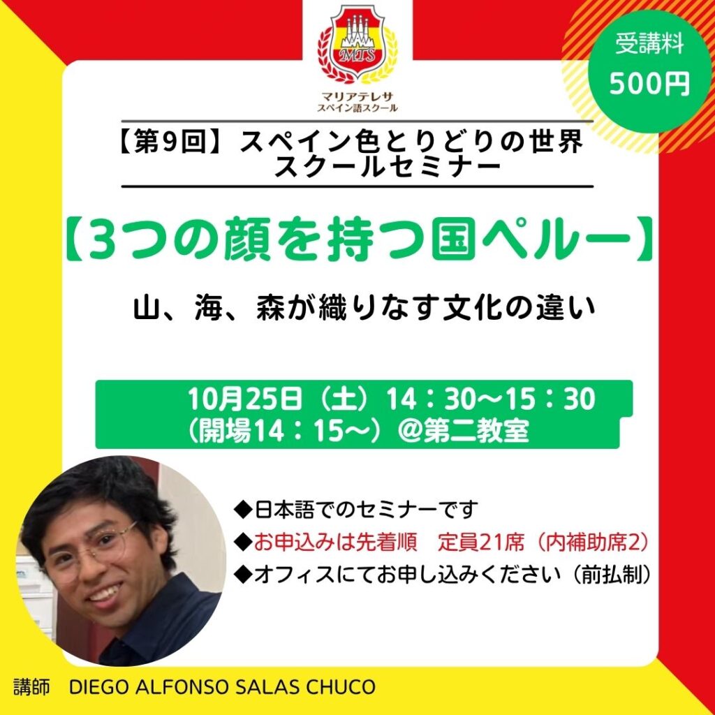 #神戸 #元町 #三宮 #スペイン語学校 #スペイン #スペイン語 #セミナー #スクールセミナー #ペルー #中南米 #peru #spanish #spain #kobe #spanishschool #españa #español