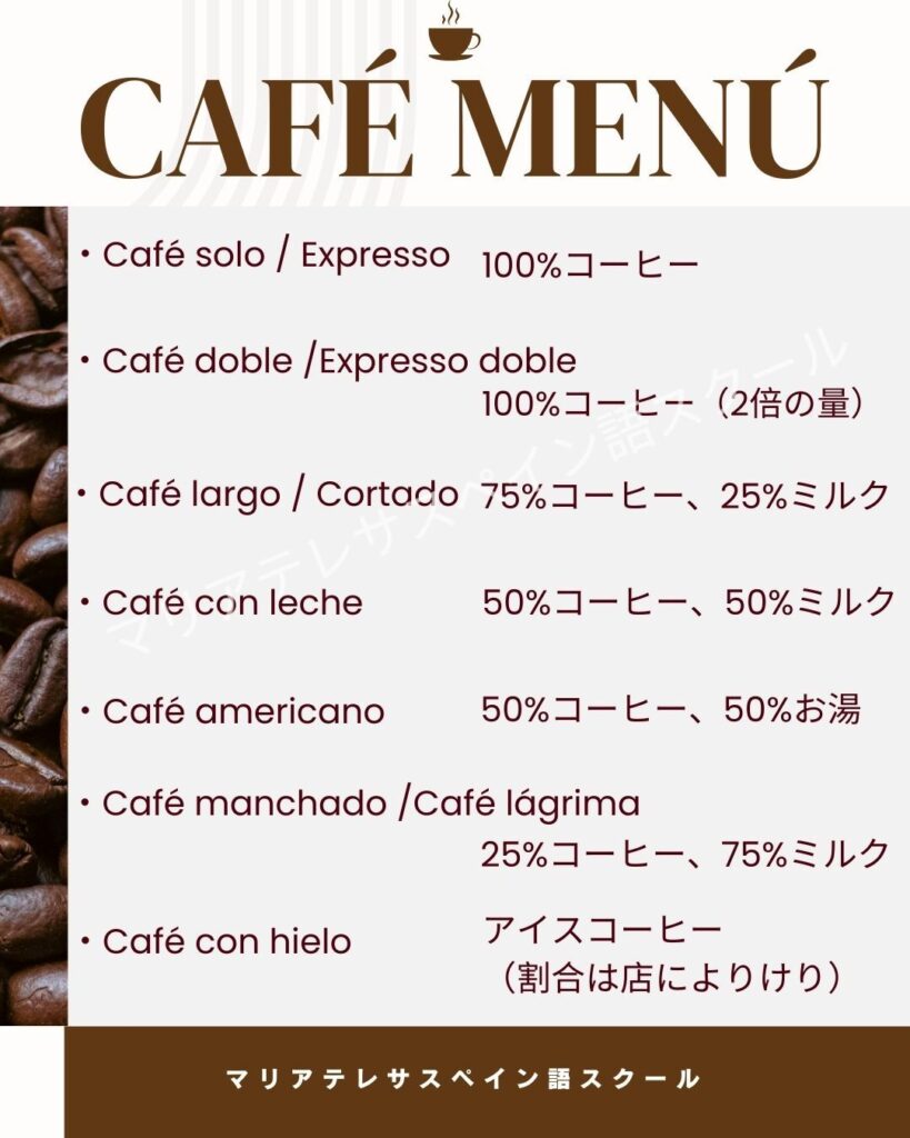 スペインやラテンアメリカには色々なコーヒーの種類があります